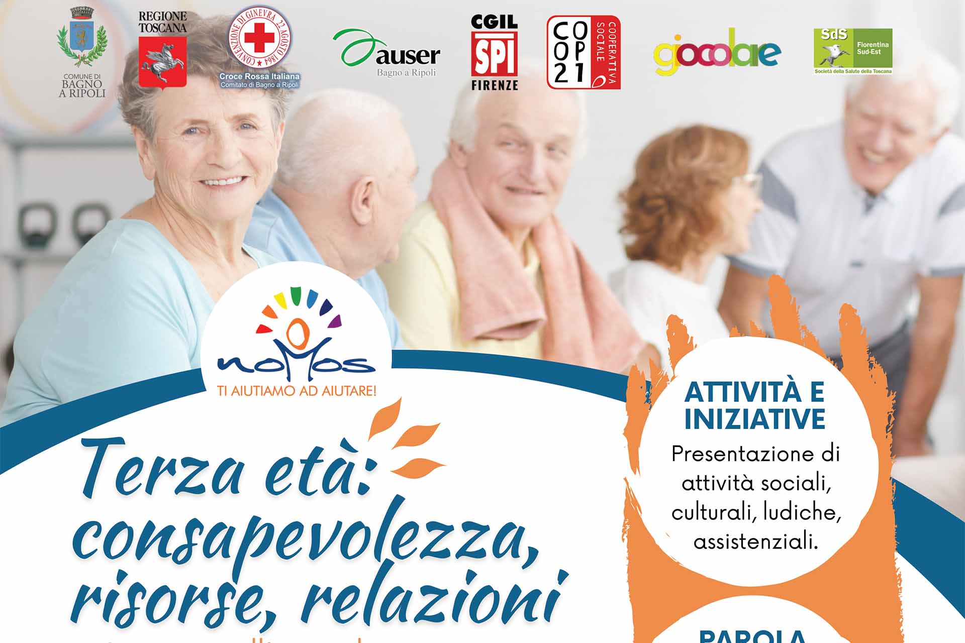 “L’invecchiamento attivo e la qualità della vita delle persone anziane – commenta il sindaco di Bagno a Ripoli e presidente della Sds Fiorentina Sud Est, Francesco Pignotti – sono una priorità per la nostra comunità e per il sistema dei servizi socio-sanitari del territorio. Iniziative come questa rappresentano un’occasione importante per fare squadra, informare i cittadini e promuovere le tante opportunità presenti. In una popolazione sempre più anziana è fondamentale ragionare sul lungo periodo per mettere al centro la persona e i suoi bisogni, lungo tutto l’arco della vita. Come Comune e come Società della Salute Fiorentina Sud Est siamo al lavoro affinché gli anziani possano continuare a essere parte viva della comunità, sostenuti da servizi accessibili, relazioni e occasioni di inclusione e partecipazione. Ringraziamo Nomos e tutte le realtà coinvolte per l’impegno nel promuovere una cultura dell’invecchiamento consapevole, inclusiva e solidale”.